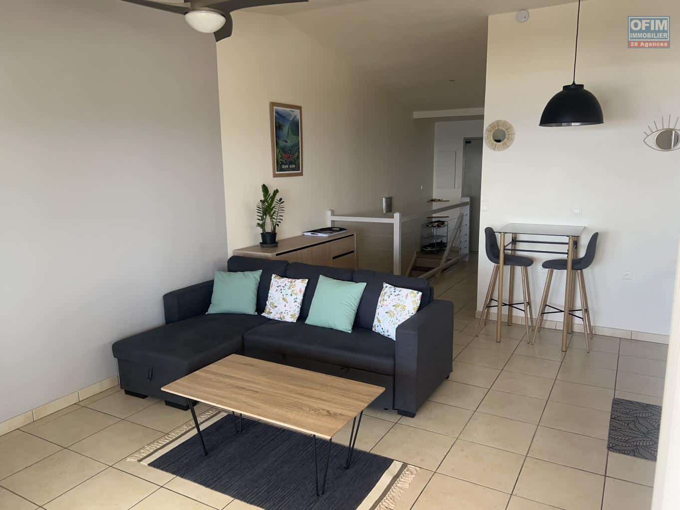 OFIM Immobilier vous propose à la location un charmant appartement T3 en duplex, entièrement meublé, situé à Saint-Leu, dans la résidence sécurisée Le Palaisio.