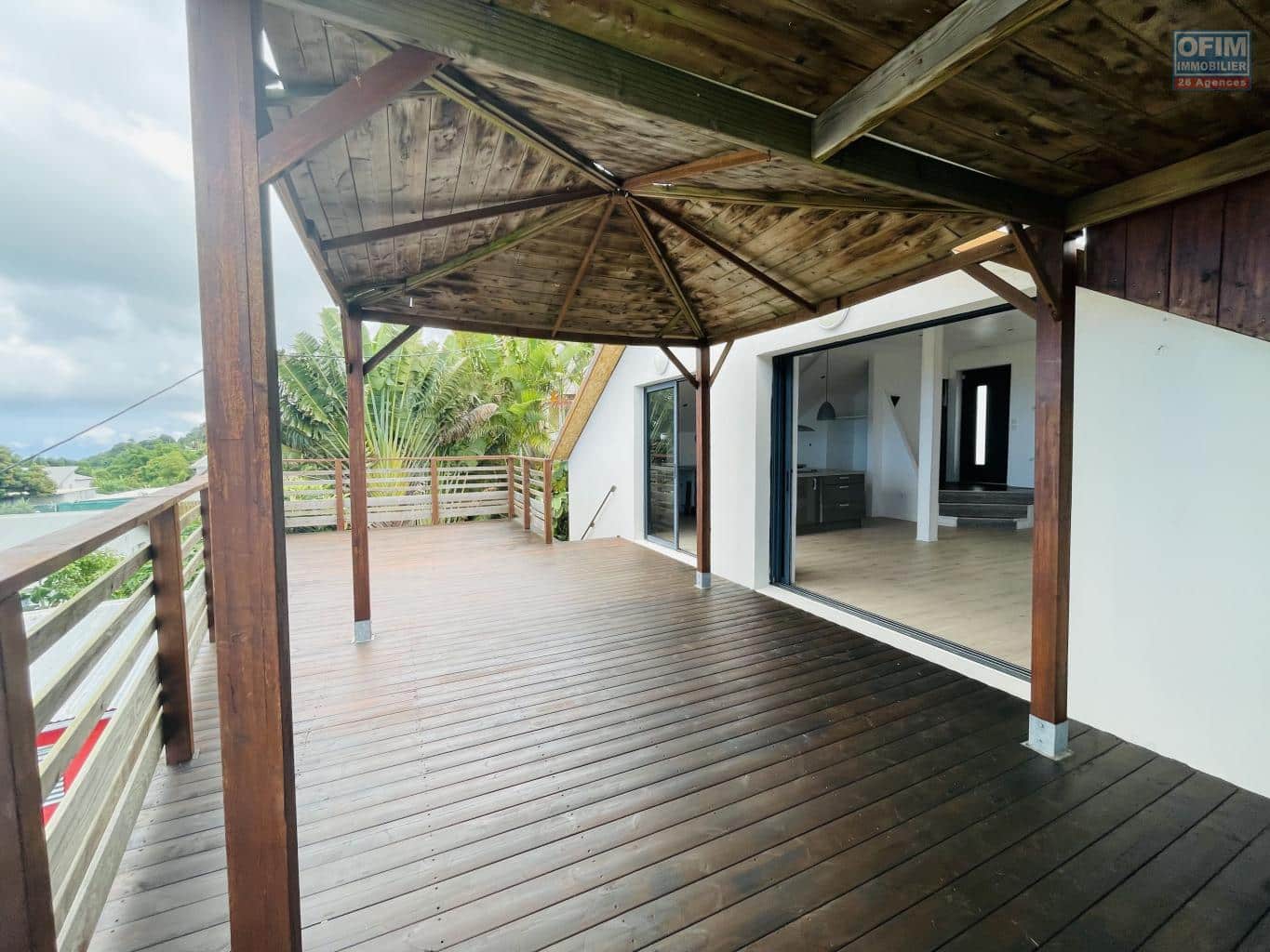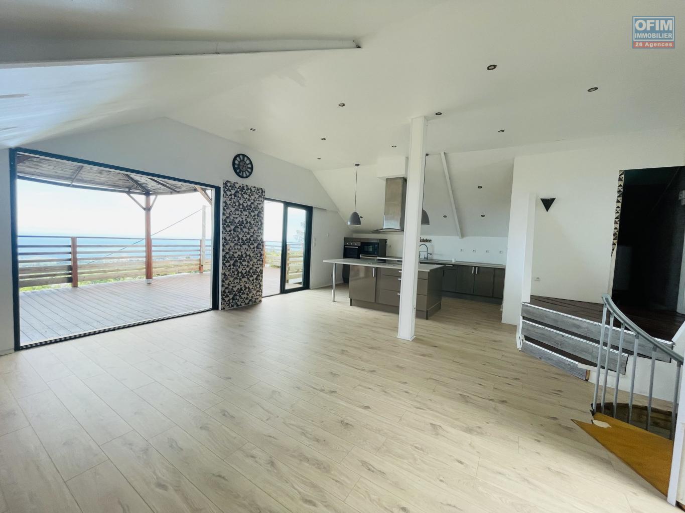 OFIM Immobilier vous propose à la location une villa récente de type F4 avec piscine chauffée, située à Bras Canot, à Saint-Gilles-les-Hauts, offrant une magnifique vue mer.