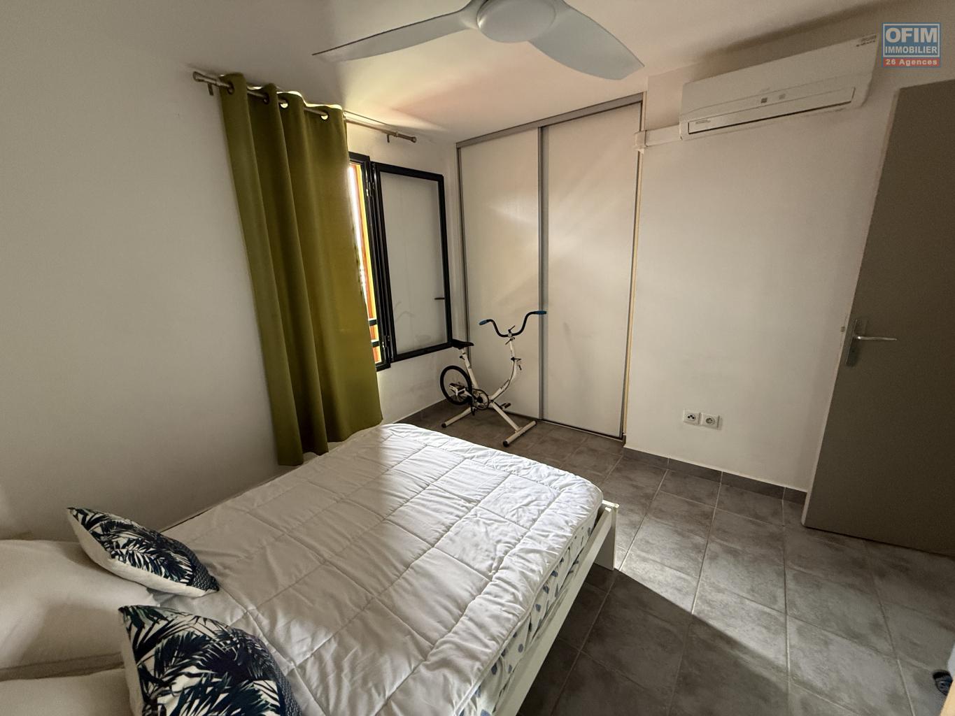 Ce bien se compose d’une agréable varangue sans vis-à-vis direct offrant une vue mer et montagne, d’un séjour avec cuisine américaine entièrement équipée, d’une chambre climatisée avec ventilation et dressing, d’une salle de bains et de WC. Idéal pour un investissement locatif, cet appartement en parfait état se trouve au 3ᵉ étage avec ascenseur d’une résidence et dispose d’une place de parking privative.