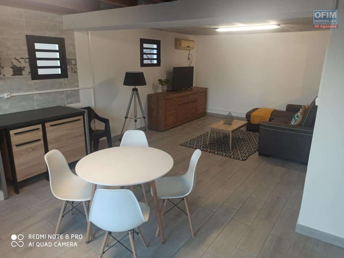 En sous-sol, un appartement de type T2 en rez-de-chaussée, actuellement loué meublé à 980 € par mois, constitue un excellent complément de revenu. La villa est équipée d’un chauffe-eau solaire.