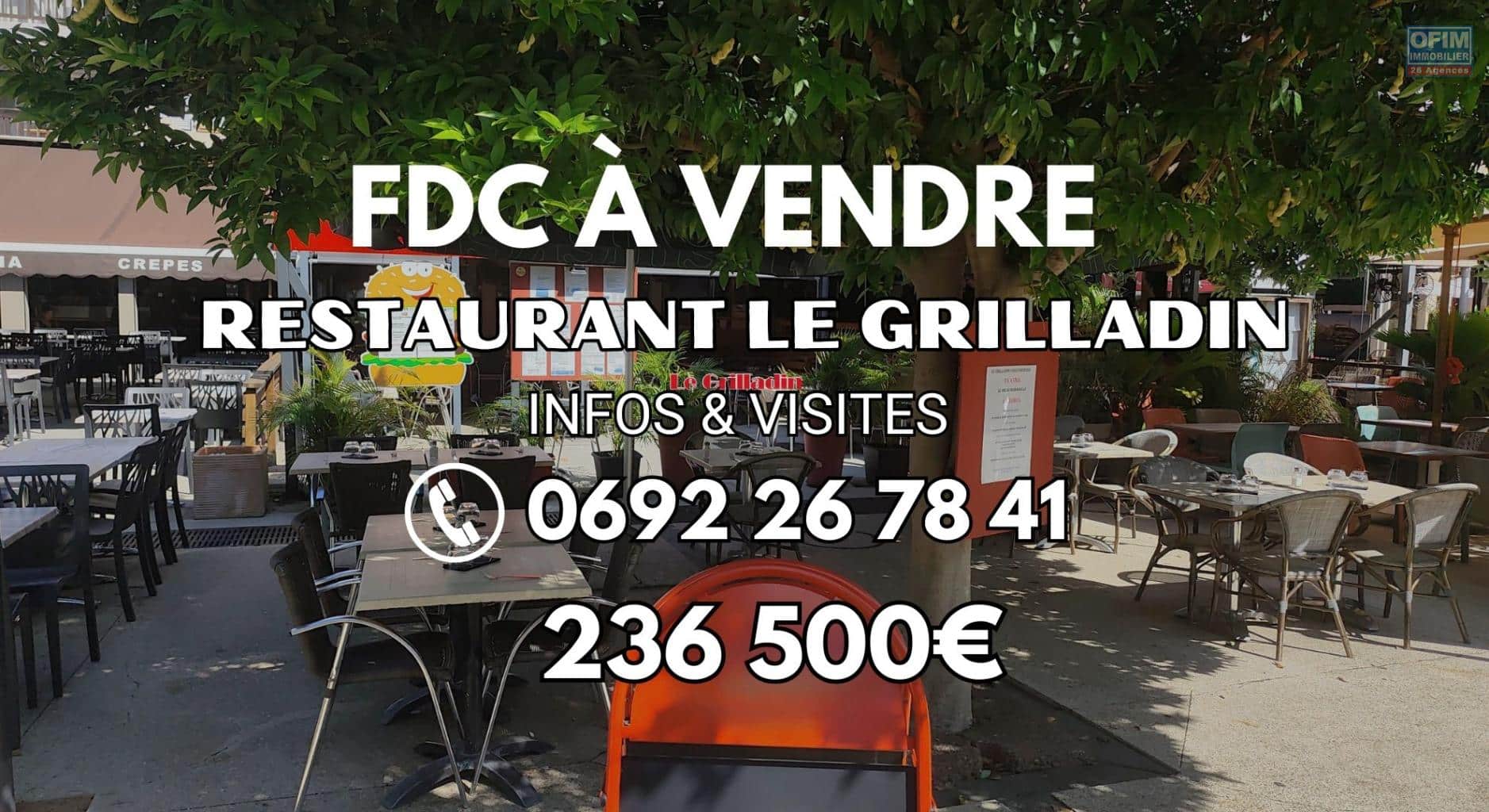 OFIM Immobilier vous propose à la vente le restaurant LE GRILLADIN, idéalement situé sur la Place du Marché à Saint-Gilles-les-Bains, un emplacement central et très fréquenté, au cœur d’un pôle de restauration dynamique à proximité du port, de la plage des Roches Noires et du centre-ville.