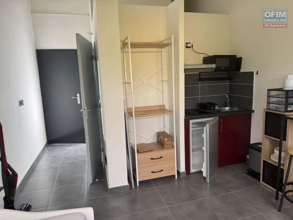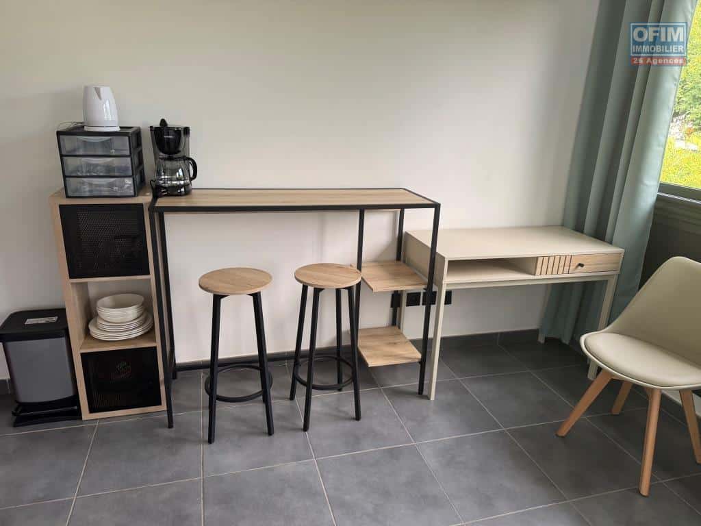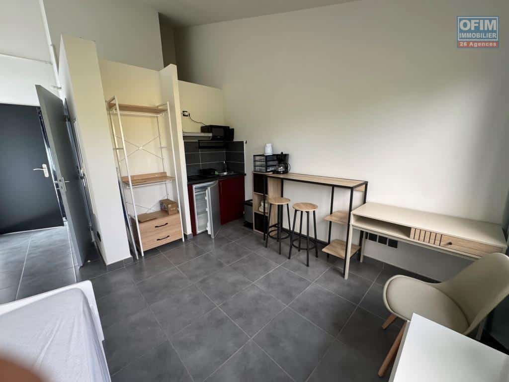 OFIM Immobilier vous propose à la location un joli studio meublé, entièrement rénové, idéal pour étudiant, situé dans une petite résidence face à l’université du Tampon.
