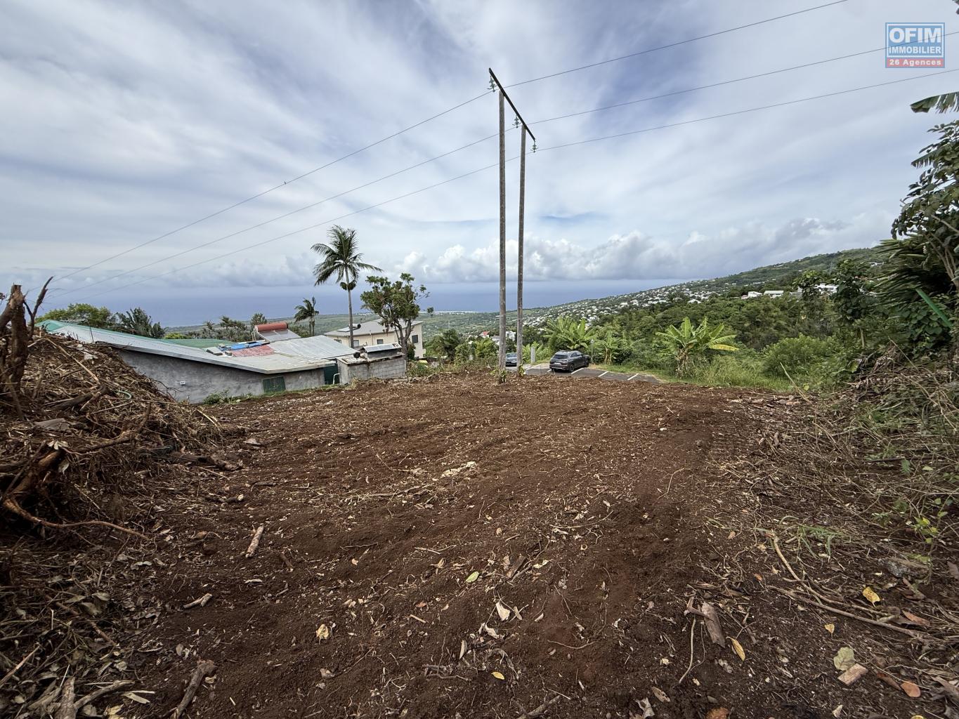 Ce terrain, en légère pente, offre une vue imprenable sur la mer et la montagne, dans un environnement calme et privilégié. À moins de 10 minutes de l’avenue Raymond Barre, il se trouve en zone UD du PLU, sans risque naturel identifié.